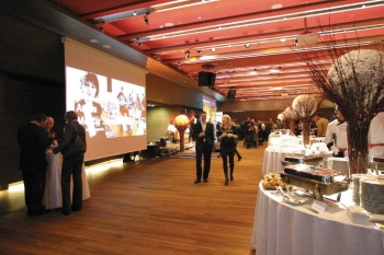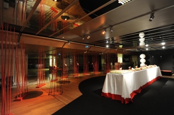 - coffee breaks and lunch breaks (round catering tables in the centre along the exhibition area)